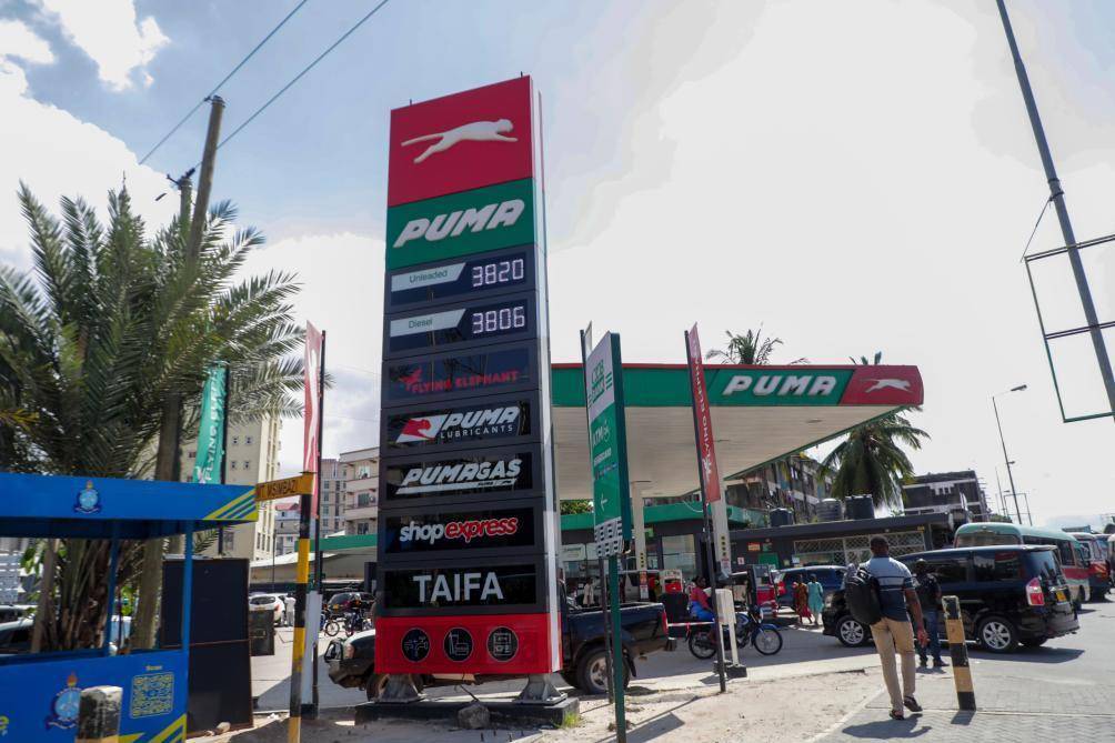 这是4月4日在坦桑尼亚达累斯萨拉姆拍摄的一处加油站的油价标牌。新华社发(埃马纽埃尔·赫尔曼摄)